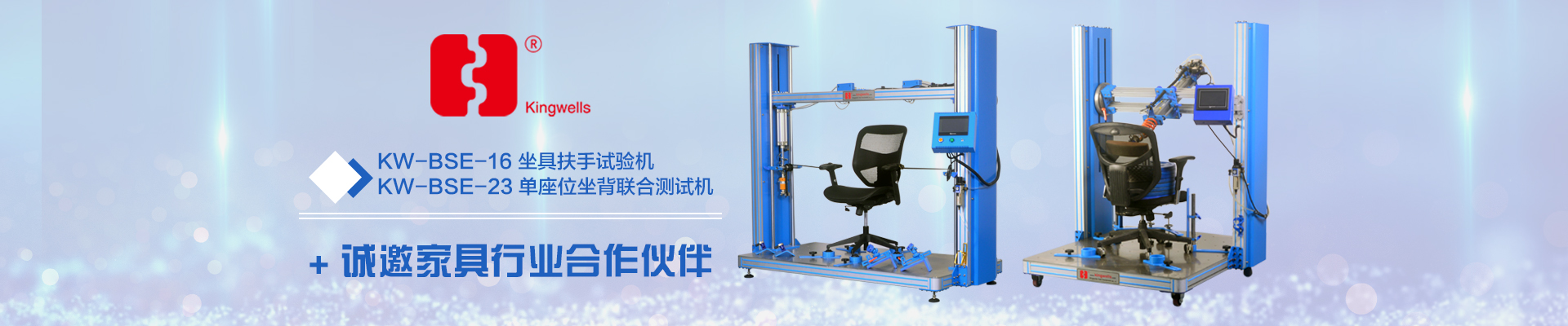 錦輝 - 家具檢測儀器專業制造商 東莞市錦輝檢測設備制造有限公司(Kingwells)前身是成立于2002年的東莞南城錦輝檢測設備廠,專門從事家具檢測設備的開發設計和生產。歷經17年發展壯大,錦輝立足中國,走向世界,如今已發展成為一家集開發、生產、銷售為一體的綜合性企業,具備向客戶提供一站式系統服務的能力,成長為家具檢測設備行業的榜樣。目前我們的客戶包括政府質檢機構,全球著名的第三方家具實驗室和海內外眾多的家具生產企業。專業團隊 錦輝擁有專業的家具檢測設備開發工程師和完善的服務團隊。公司管理層深耕檢測行業數十年,積累了豐富的實踐經驗,我們生產的設備具有外形美觀,結構合理,操作簡單等特點,幾乎不需要專業知識和專用工具便可以操作。產品類別 錦輝生產的家具測試設備涵蓋了辦公家具,戶外家具和室內家具的所有測試。可以滿足GB,BIFMA,BS,ISO等標準的各項測試要求,并可針對特定標準進行定制開發。所獲成績 經過多年創新發展,錦輝已經成為業內知名品牌,業務遍及東南亞,日本,歐洲及北美地區。我們是全球知